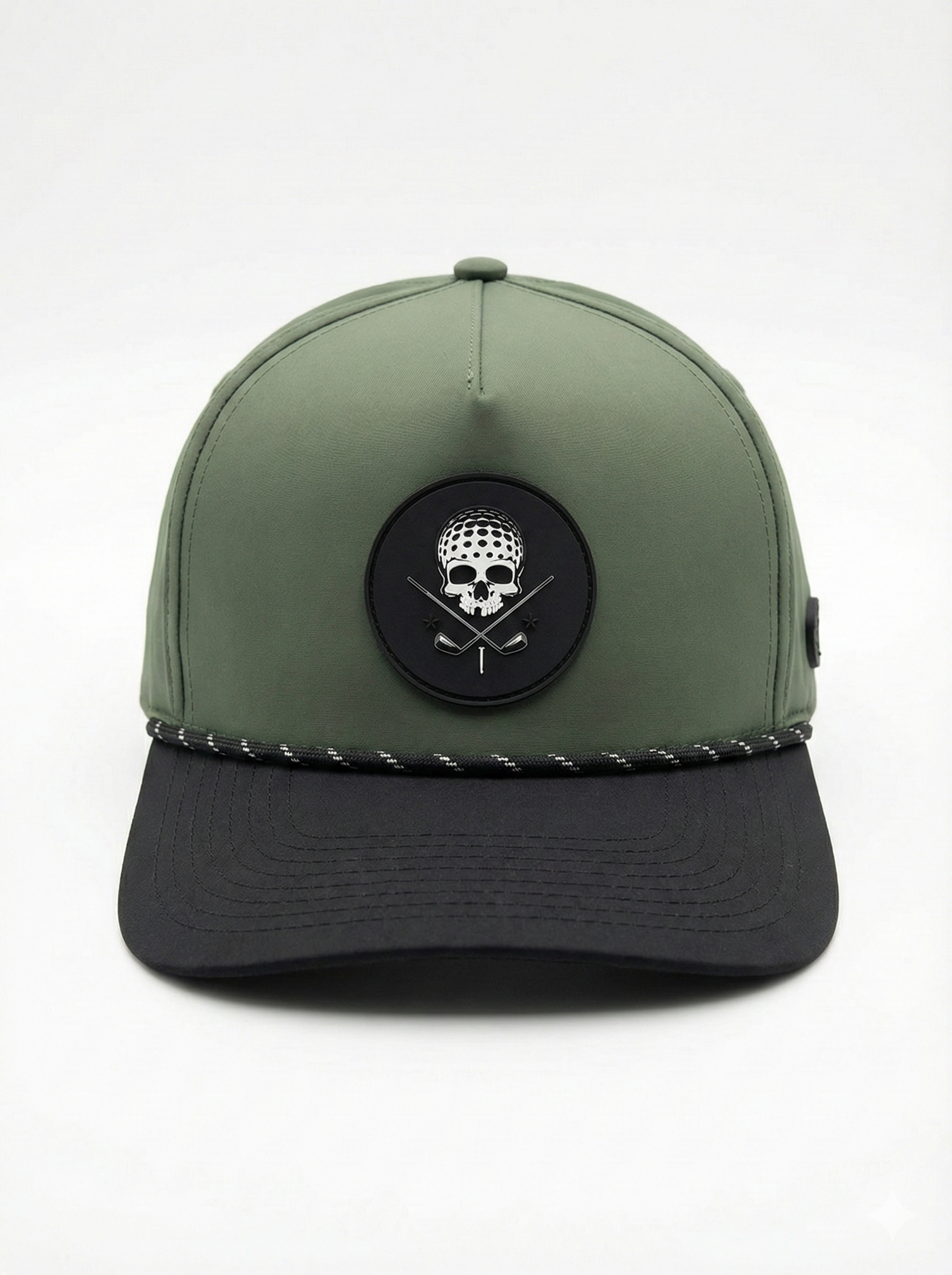 - Front 3D rubber patch featuring the No Bogey Club skull-and-tees emblem